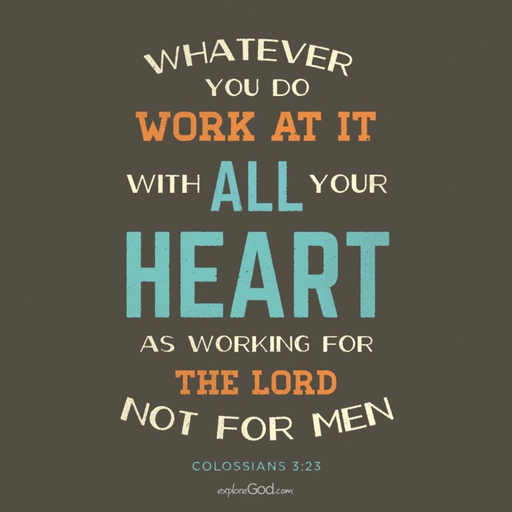 “Whatever you do, work heartily, as for the Lord and not for men, 24 knowing that from the Lord you will receive the inheritance as your reward. You are serving the Lord Christ.” -Colossians 3:23-24