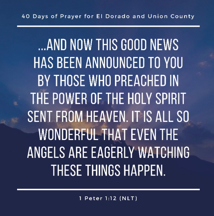 …And now this Good News has been announced to you by those who preached in the power of the Holy Spirit sent from heaven. It is all so wonderful that even the angels are eagerly watching these things happen. – 1 Peter 1:12 (NLT)