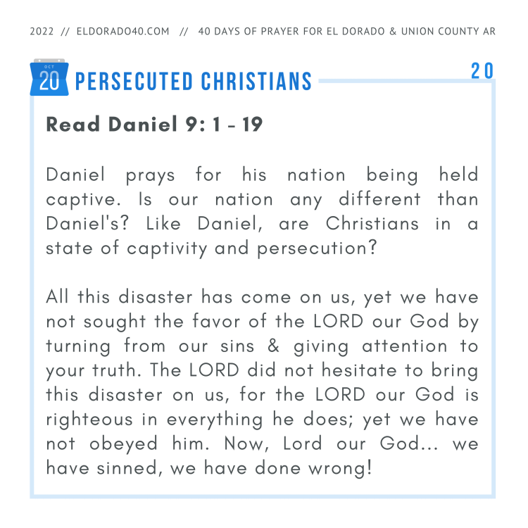 Daniel prays for his nation being held captive. Is our nation any different than Daniel’s? Like Daniel, are Christians in a state of captivity and persecution?