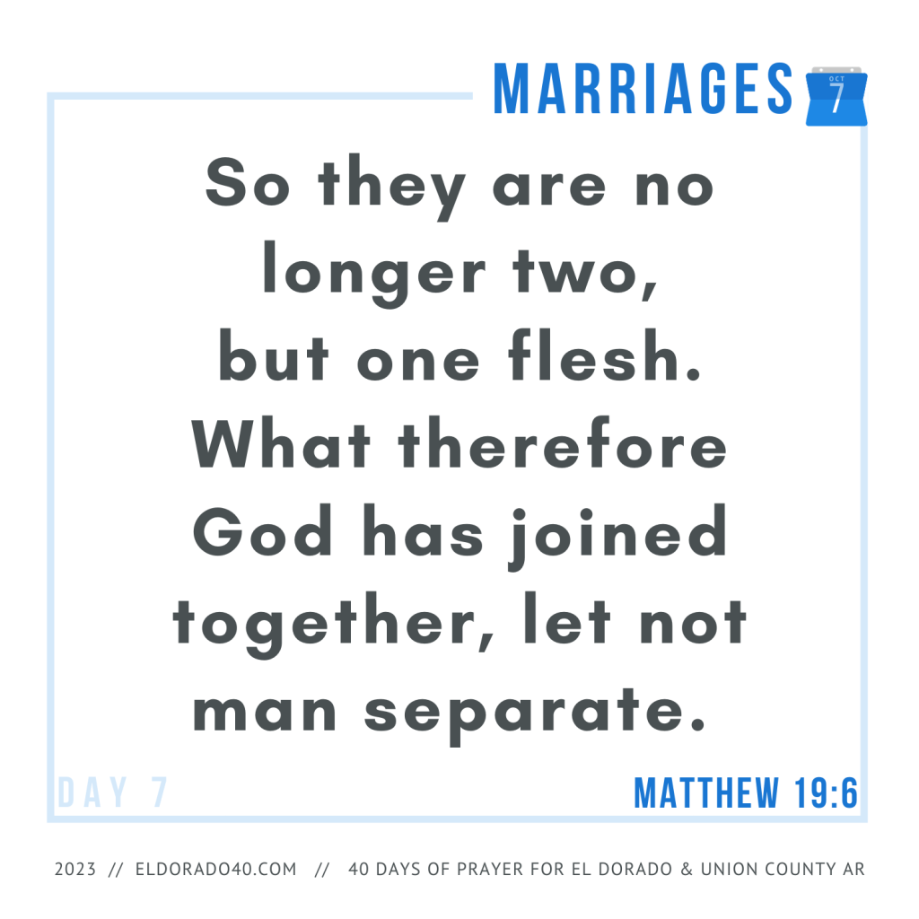 So they are no longer two but one flesh. What therefore God has joined together, let not man separate. – Matthew 19:6