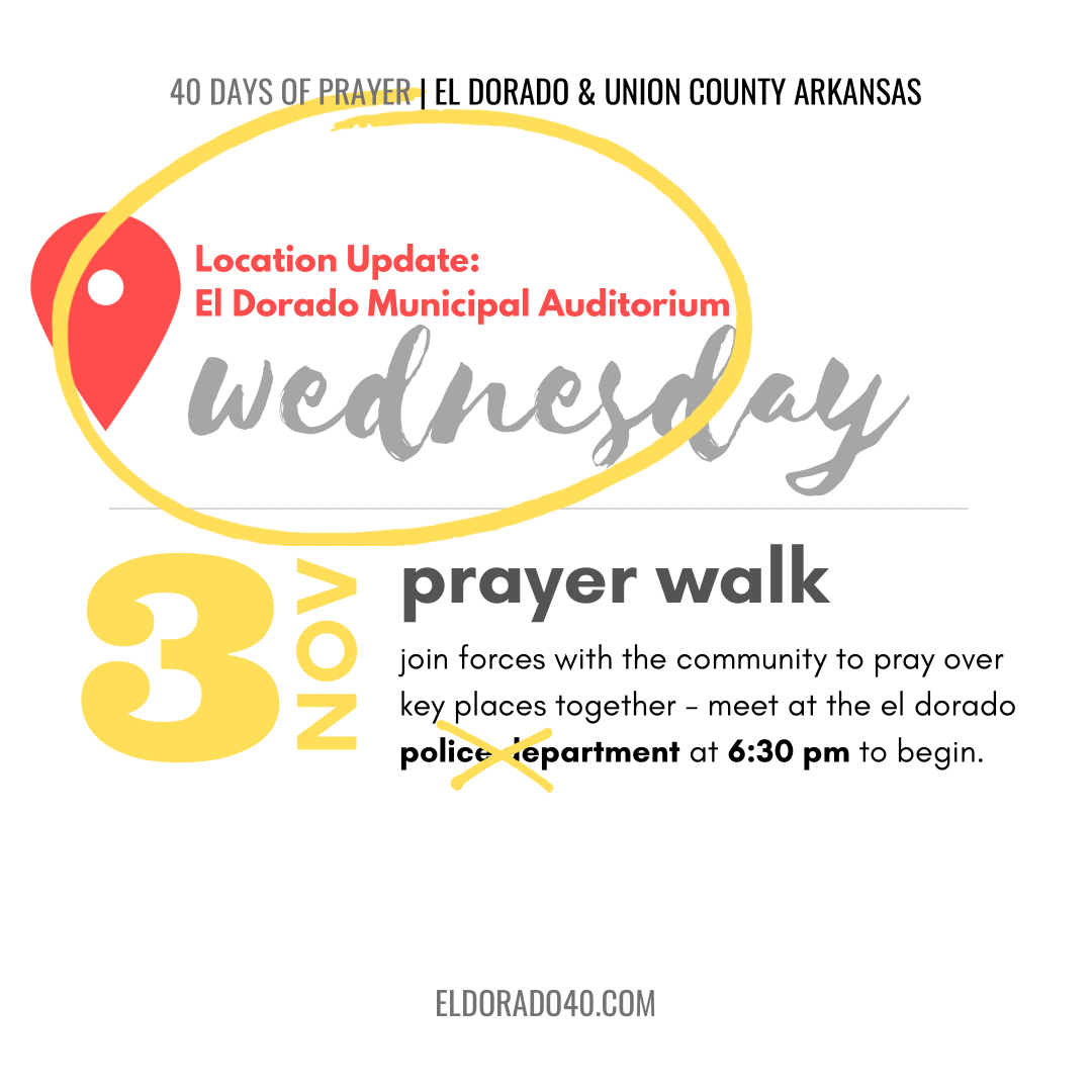 **JOIN TOGETHER: Community-wide Prayer Walk today at 6:30 pm – MOVE TO MUNICIPAL AUDITORIUM due to weather**